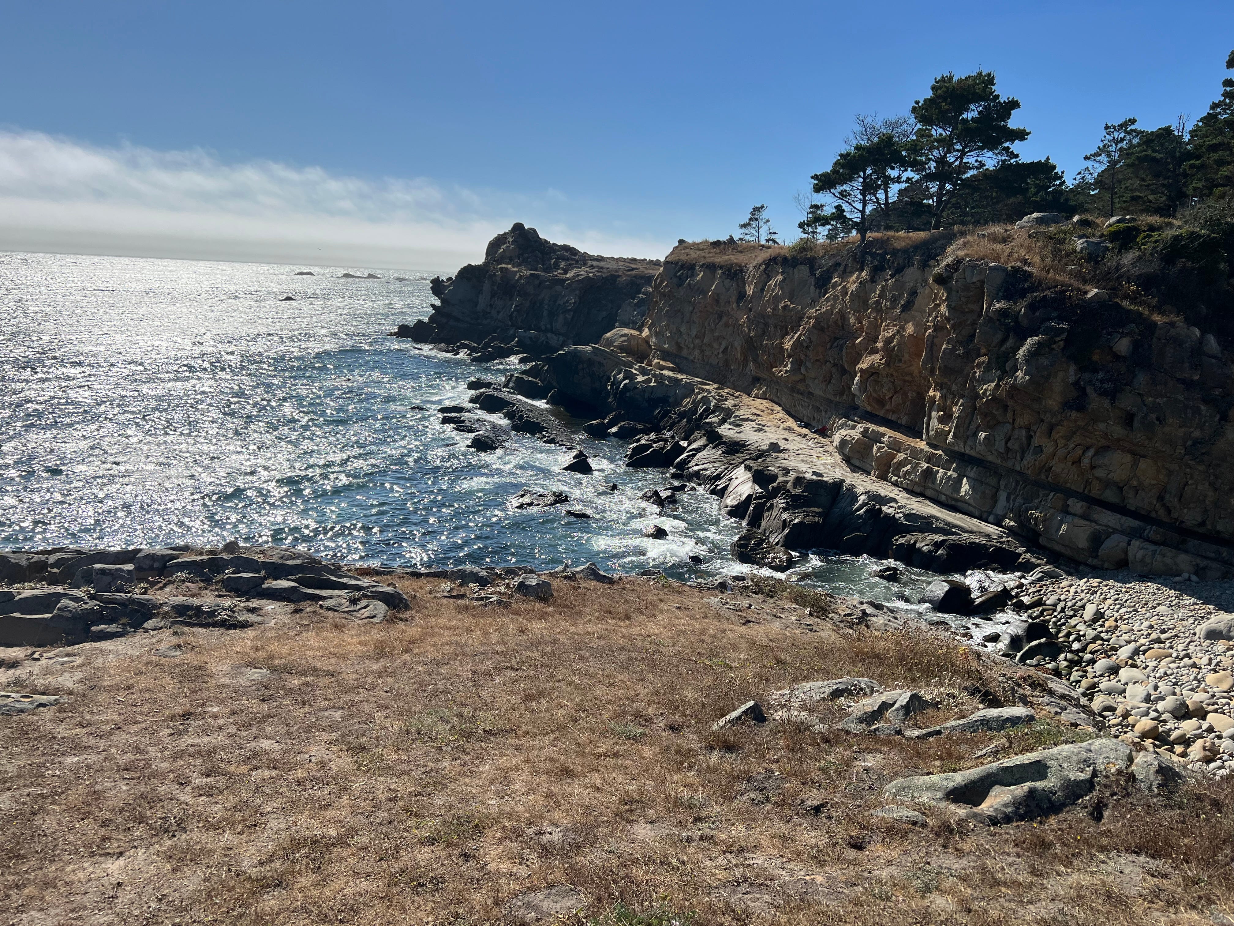 I see now even as I saw then, inside of all the sensations and surprises, a yearning for that peak experience that would somehow define the journey and transform the soul. I thought I had it too. I danced and raved about it. “It happened! I disappeared.” Maybe it did happen and maybe I did disappear. What would that be like? To escape the overbearing sun I stooped in a narrow band of shade by a small dirty waterfall. From there I meditated while listening to the gentle splash and babble of the creek and looking out on a beachhead stuffed with smooth stones of all sizes and one conspicuous piece of driftwood laid down like the subject of a composition. A bleached and overexposed Godard set arranged around this ragged log, salt- and sun-weathered to purple, gray, and orange. Passively radiating wonder. I must remember this I was telling myself. Insistent, like I could feel deeply the loss of the memory while it was still being recorded.