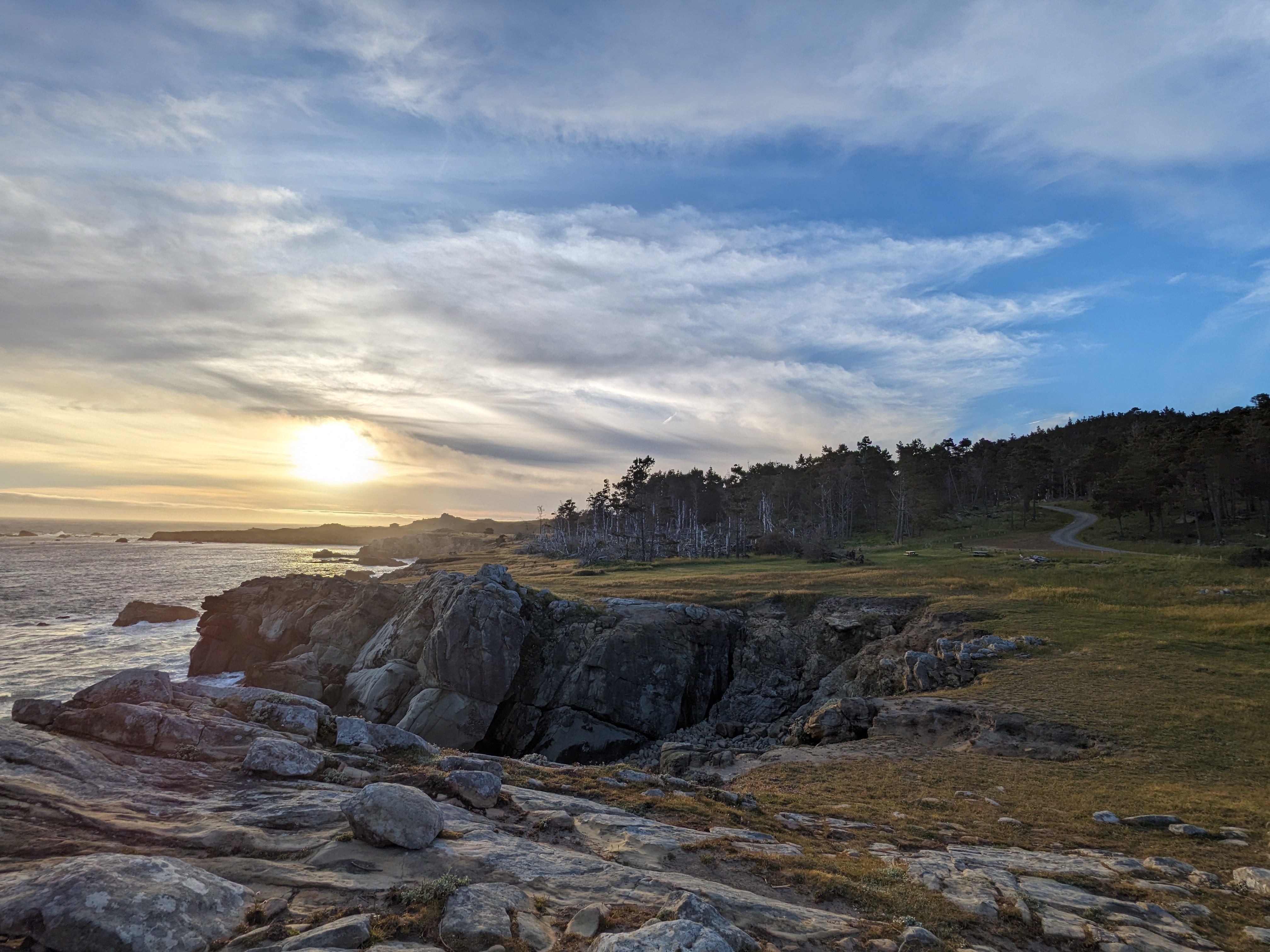 We have staged our voyage on a tilted plane of sandstone. The side toward the ocean juts proudly up above the heaving water while the declined aspect is buried under the cliffs that outline the end of the continent. Below where we are seated, a perfectly clear tidepool has gathered in a depression formed where another of the canted shelves subducts into vertical rock. Protected from the windswell shoving against the craggy coastline, the pool is a flat long triangle of inviting stillness, as though a designed work of holy architecture. There's a piety in its repose, like a baptismal font that calls us to enter naked and be burned briefly by its searing cold water.